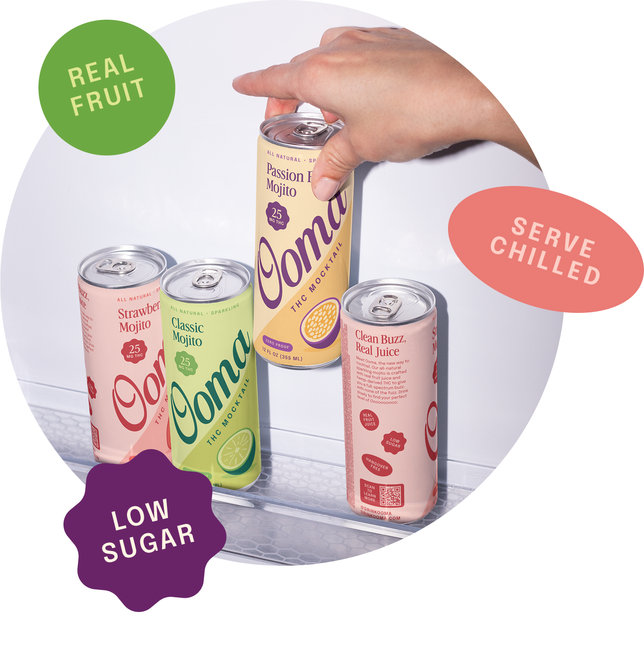 Everyone has a different tolerance and response to cannabis, so drink Ooma slowly to find your own sweet spot. Drinking THC in a beverage can feel different to other forms of use, so even if you consider yourself experienced, take it slow.